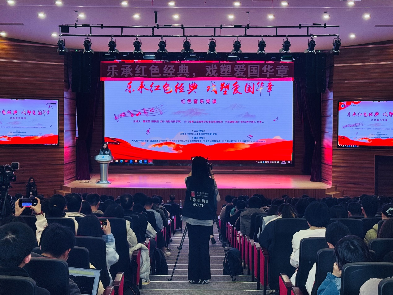 随后,公司党委组织全体师生党员在成信大礼堂参加了以“乐承红色血脉,戏塑爱国华章”为主题的音乐党课。四川电影电视学院副教授董莹莹以党的发展历程为轴,通过音乐、戏剧表演等多种艺术形式,生动展现了中国共产党从诞生到发展壮大的历程。