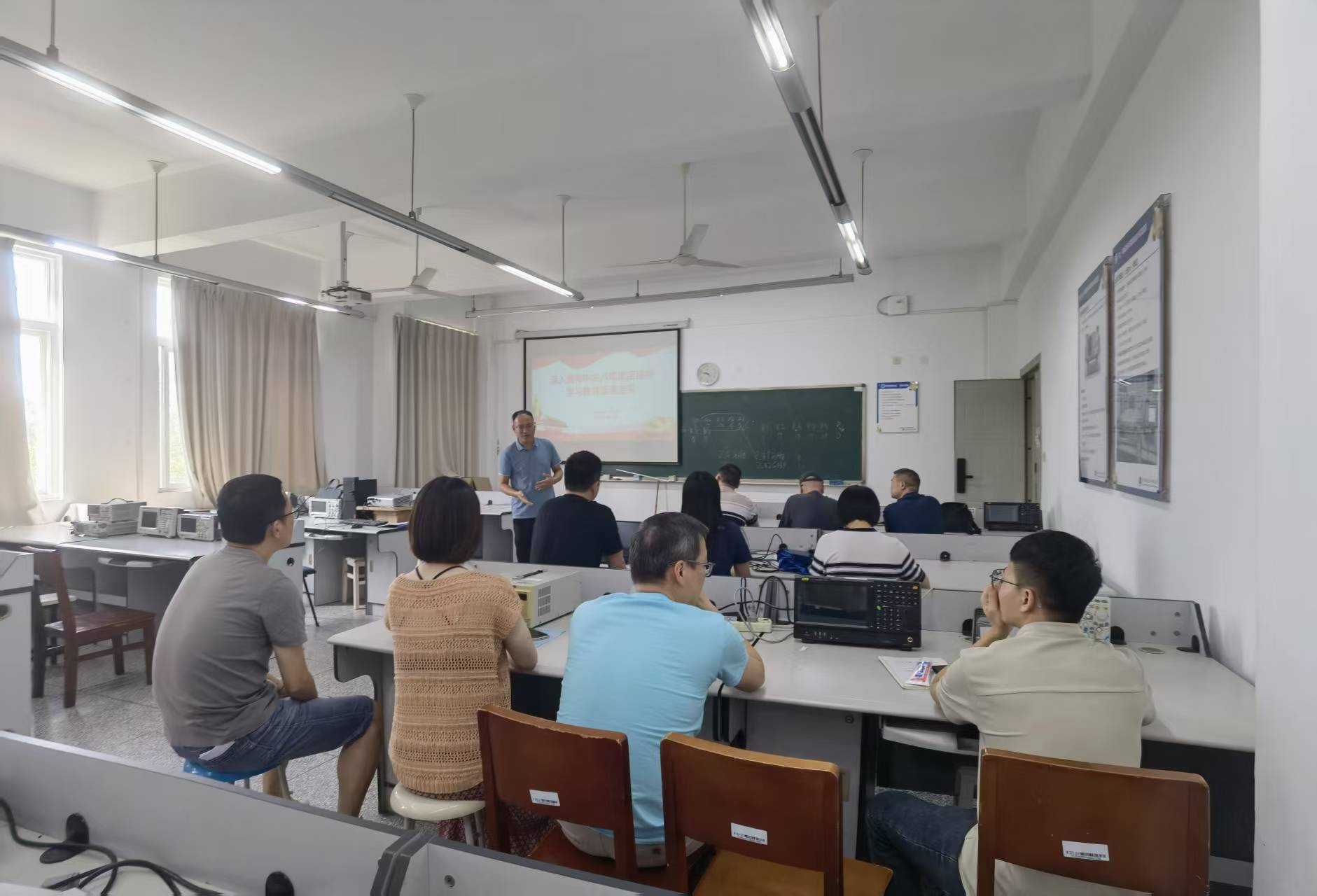 6月12日下午,公司党委副书记、纪委书记杨勇在6411教室为联系党支部电信科学教工党支部全体党员上题为“认真学习贯彻习近平总书记重要讲话精神推动深入贯彻中央八项规定精神学习教育走深走实“专题党课,该支部全体教师党员参加了此次党课学习。