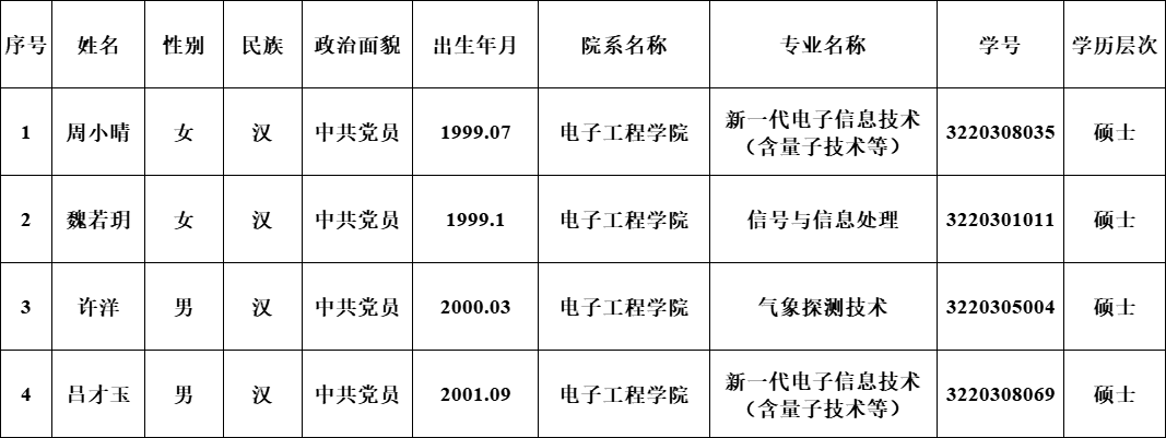 根据beat365相关文件规定,本着公开、公平、公正的原则,2025届优秀毕业研究生评审经员工个人申请、班级推荐、学院评审,共推荐4名候选人,现将公司2025届优秀毕业研究生拟推荐员工名单予以公示。如有异议,请于2024年11月20日至2024年11月25日到气象楼229办公室反映。联系人:杨老师,电话:028-85966916,邮箱:yangyong@cuit.edu.cn。