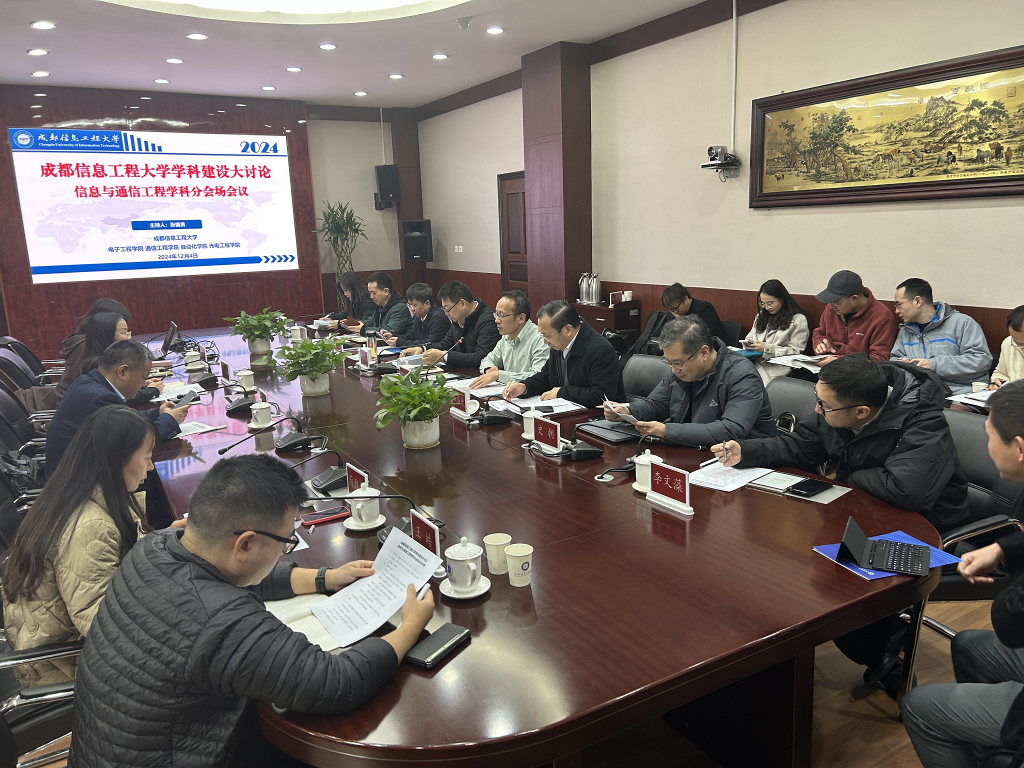 接下来四个学院分别进行了各自学院的总体情况汇报,内容包含学院发展历史、学科专业体系搭建、团队队伍建设、实验平台打造、科研成果及应用场景、产教融合和学院特色亮点。最后各学院都针对自身问题进行了总结并提出了初步的解决方案供各位专家现场指导和讨论。