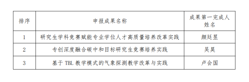 按照学校《关于开展2025年beat365研究生公司产品成果奖评选工作的通知》(研教发〔2025〕4号)文件精神及申报工作要求,经教师个人申报,学院学术委员会评审,党政联席会通过,拟推荐2025年研究生教学成果奖3项,现予公示,具体名单如下: