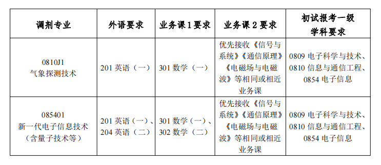 3.考生的初试科目以及初试报考专业应满足以下要求: