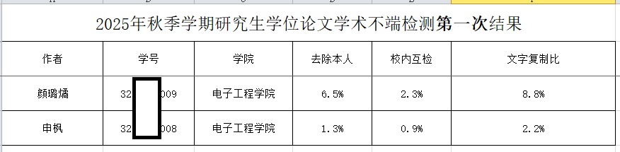 2025届研究生秋季学位论文第一次学术不端审查结果