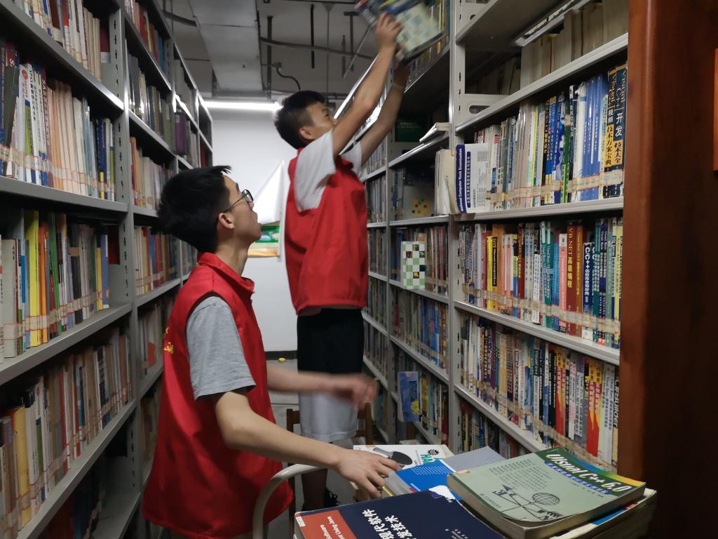 活动当天,志愿者们在图书馆的老师的指导下完成图书搬运与整理工作。志愿者们先从楼上将旧书籍搬运至负一楼图书保管室,然后将书籍整齐地摆放在对应的书架上。过程中,志愿者们合作默契,不辞辛劳。经过一个半小时的努力,堆成小山的书籍被整整齐齐的摆放在了图书保管室的书架上,既方便了同学们查找书籍,也为新书籍腾出了空间。